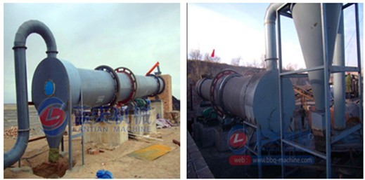 Sand sent to the hopper by the belt conveyor and bucket elevator, and then through the hopper feeder into the feeding pipe, thereby entering the feeding end. The feeding pipe inclination is greater than the natural angle of materials, so that material flows into the sand dryer.Dryer cylinder is a rotating cylinder that have a certain inclination with horizontal line. Material from the high-end to join, heat carrier from the low-end entry, countercurrent contact with material, also have heat carrier and material flow into the cylinder together. With the rotating cylinder materials by gravity run to the lower end. Wet material in the cylinder body to move forward, heat by heat carrier directly or indirectly, so that the wet material to be dried, then at the discharge end through a belt or a screw conveyor send out. In sand dryer inner wall of the cylinder is provided with a copy board. Its role is to bring up material then down, increasing the contract surface of material and gas flow, in order to improve the drying rate and promote material progress. Heat carrier are generally divided into hot air, flue gas. Heat carrier through the dryer, then the material in the gas was collected by cyclone dust collector. If need to further reduce the exhaust gas dust content,also should dust by the bag dust collector.